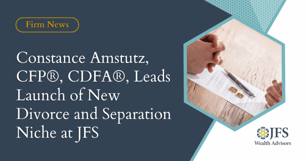 JFS Wealth Advisors has launched a new divorce and separation planning niche led by Constance Amstutz, CFP®, CDFA®. This offering provides tailored financial guidance for individuals navigating divorce, including asset division, tax considerations, estate planning impacts, and long-term financial security. The initiative reflects JFS’s commitment to specialized planning for every stage of life.